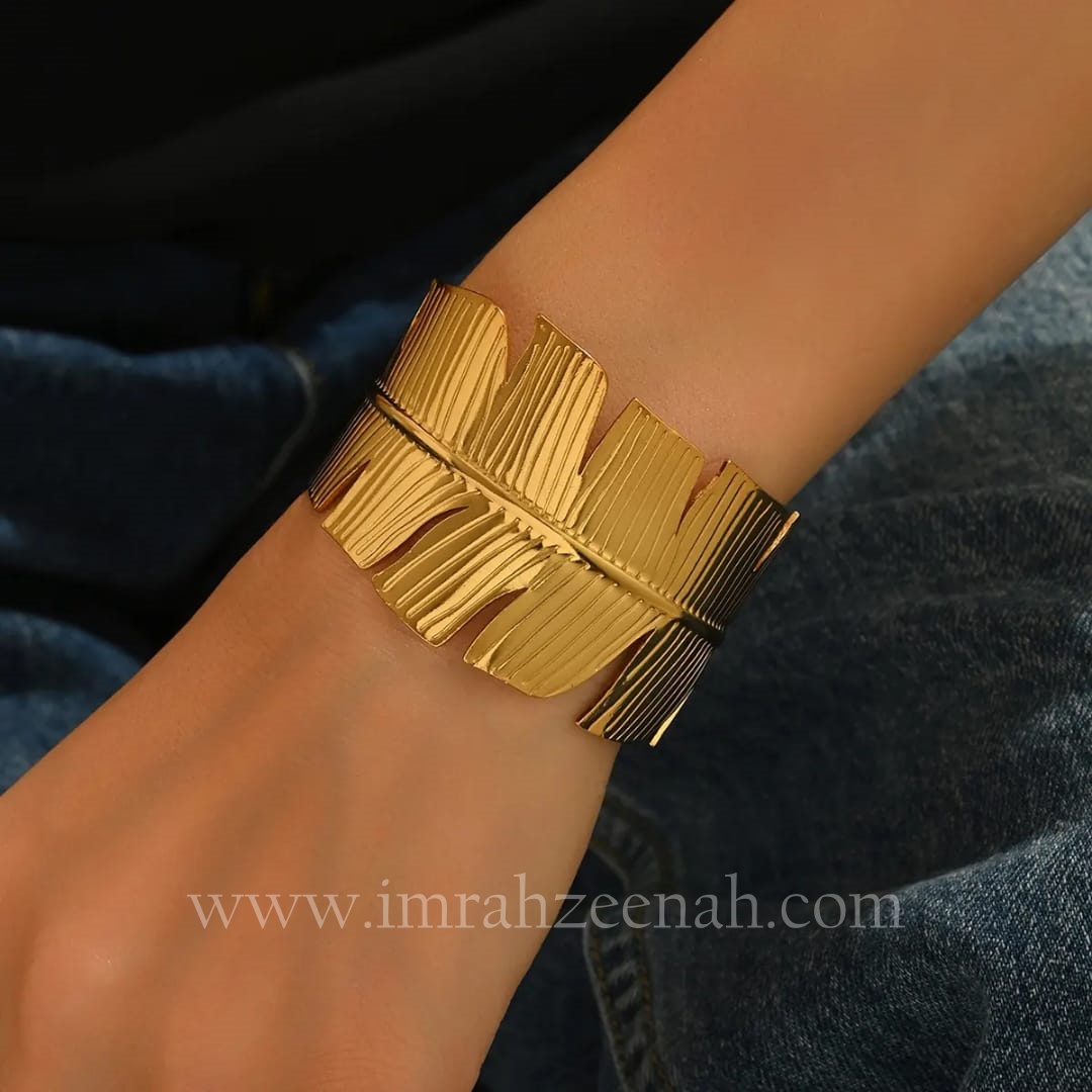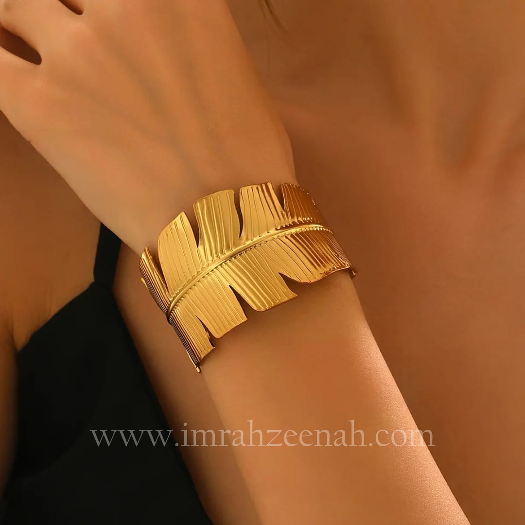 The Bold Leaf Statement Cuff – 040 brings effortless elegance to your everyday style. Designed with a sculpted, nature-inspired leaf pattern, this wide cuff adds a bold yet sophisticated touch to any outfit.