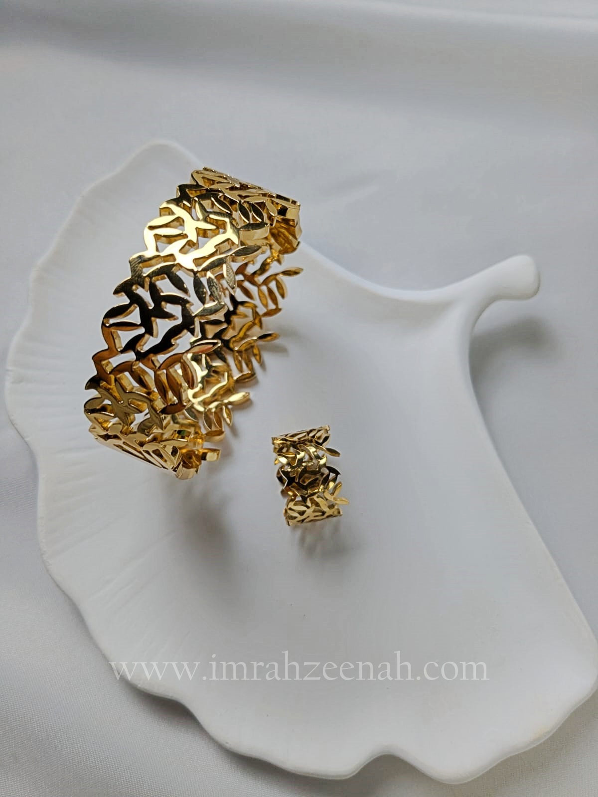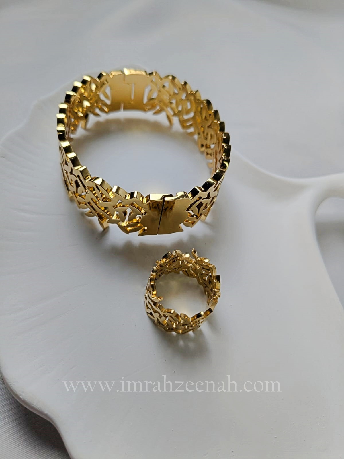 Whether styled with formal wear, evening outfits, or everyday chic looks, this cuff & ring set adds the perfect touch of luxury. Plus, with its waterproof, tarnish-free, and hypoallergenic properties, you can wear it worry-free during bathing, wudu, or daily use.